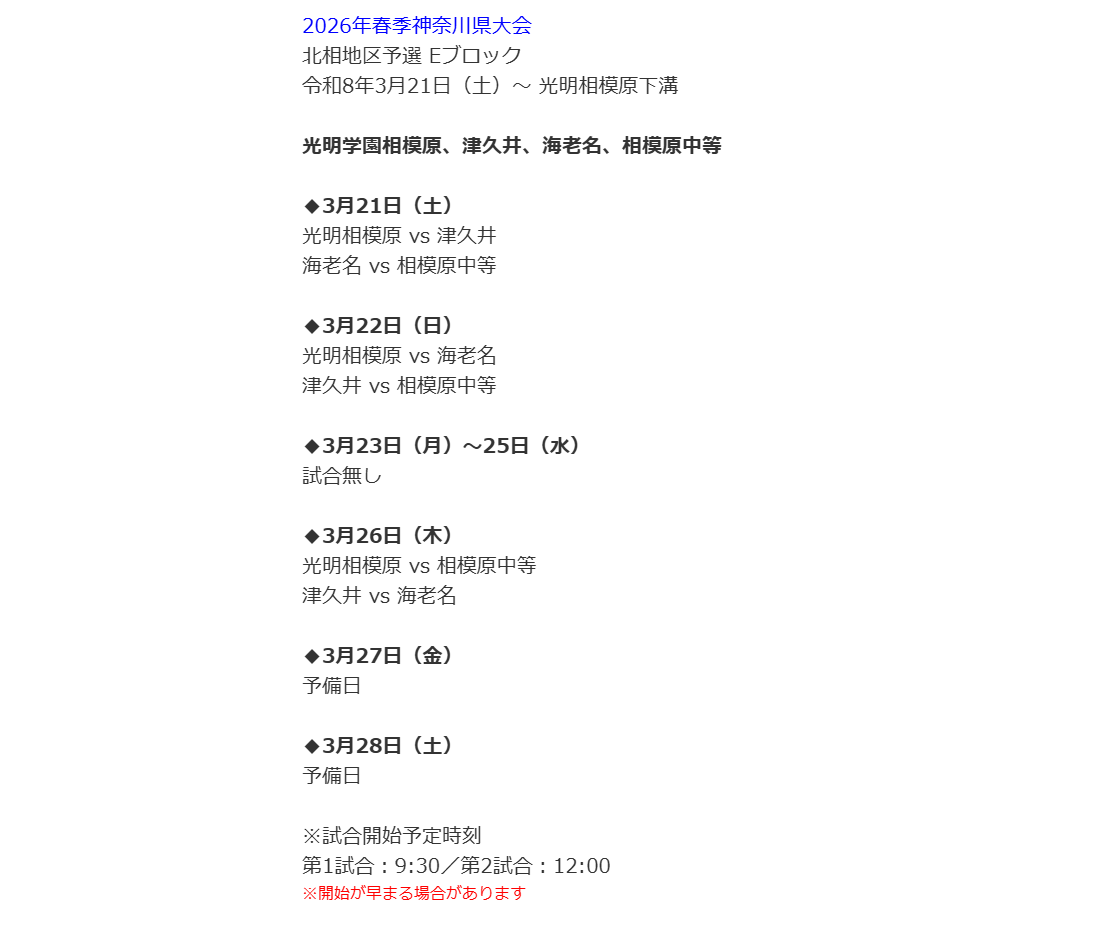 2026年春北相地区予選の組み合わせが決まりました!!